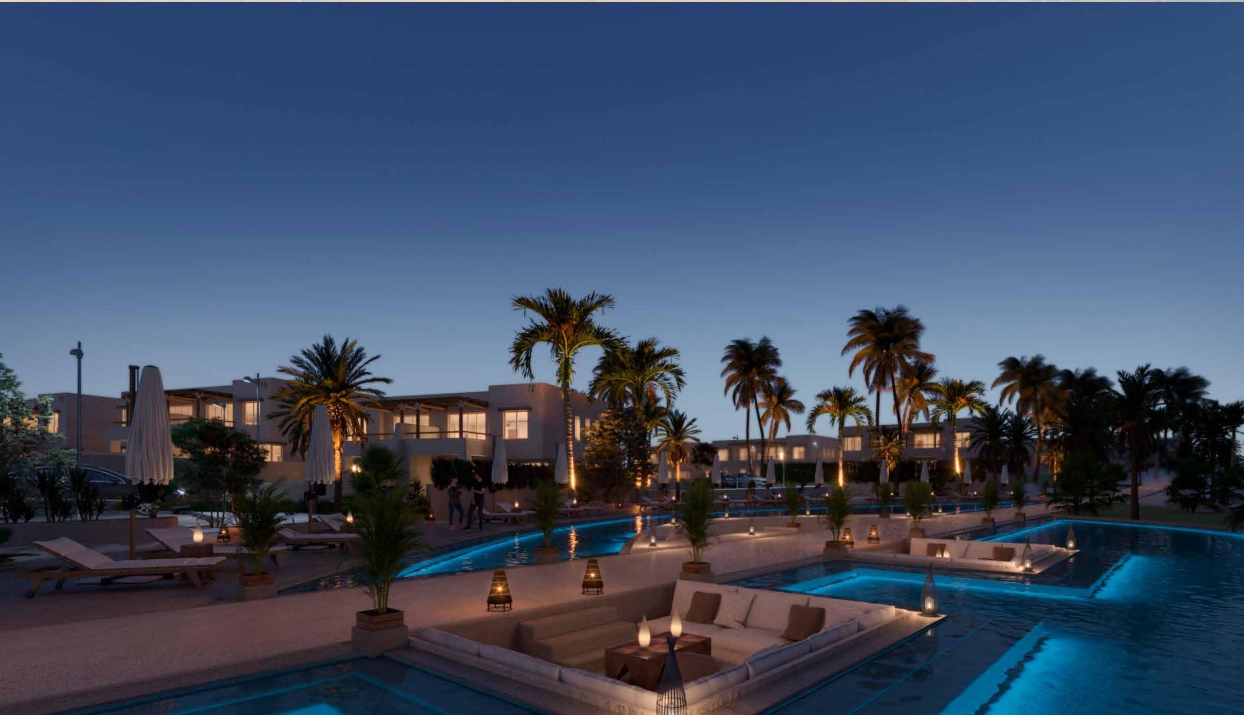- كما تبدأ مساحة الشاليهات بغرفة نوم واحدة في هاسيندا ووترز بالم هيلز من 70 متر مربع.